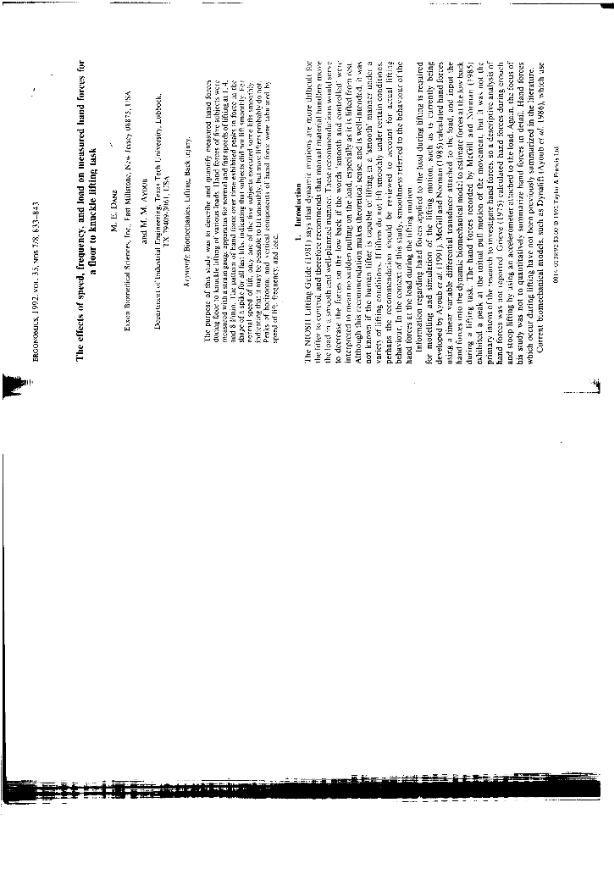 The Effects of speed, frequency, and load on measured hand forces for a floor to knuckle lifting...