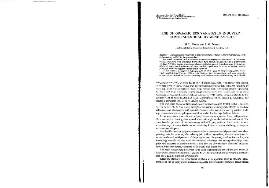 Use of organic isocyanates in industry : some industrial hygiene aspects
