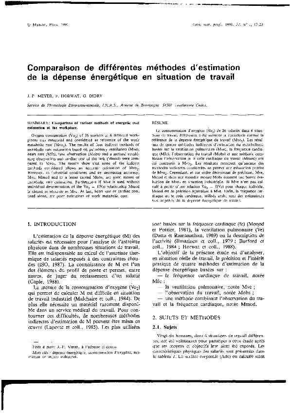 Comparaison de différentes méthodes d'estimation de la dépense énergétique en situation de travail