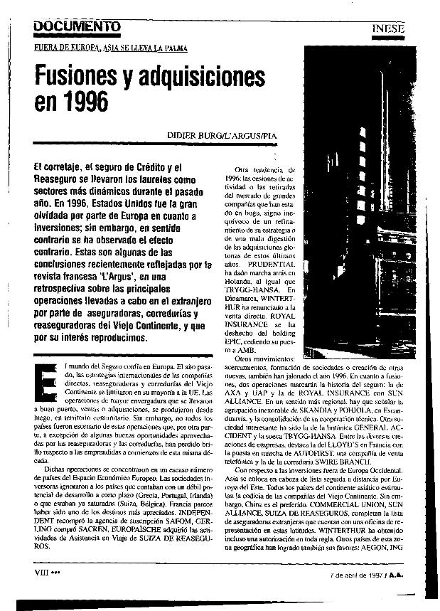 En: Actualidad aseguradora. - Madrid. - nº 12, 7 abril 1997 ; [5] p.