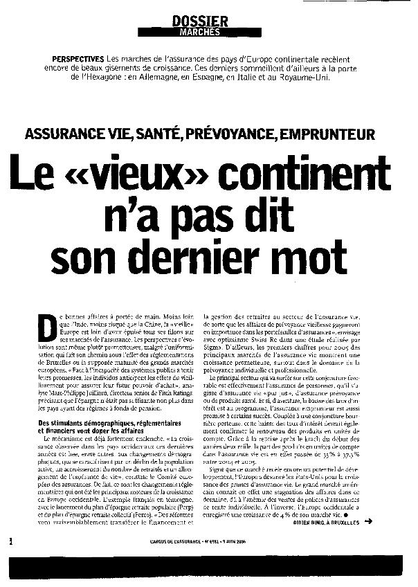 En: L'Argus de l'assurance. - Paris. - nº 6930, 20 Mai 2005 ; p. 32-34