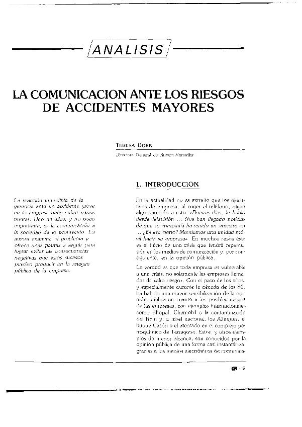 La Comunicación ante los riesgos de accidentes mayores