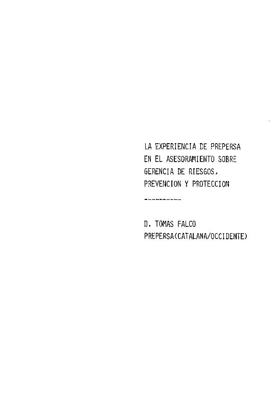 La Experiencia de PREPERSA en el asesoramiento sobre gerencia de riesgos, prevención y protección