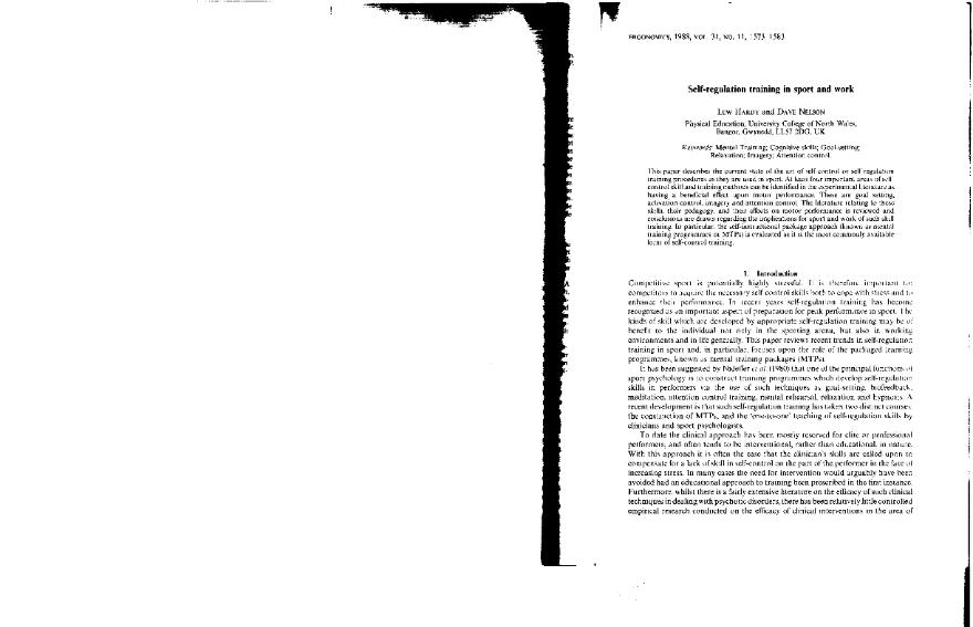 Self-regulation training in sport and work