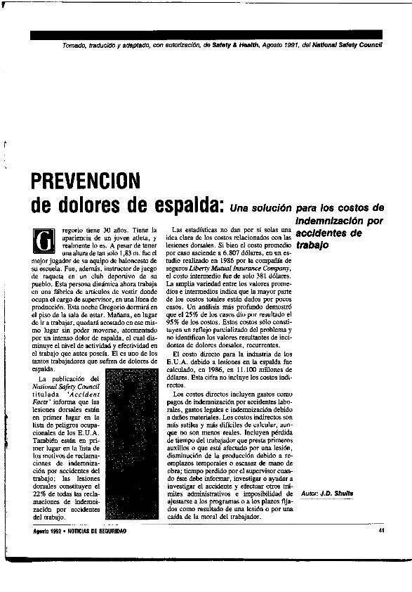 Prevención de dolores de espalda : una solución para los costos de indemnización por accidentes...