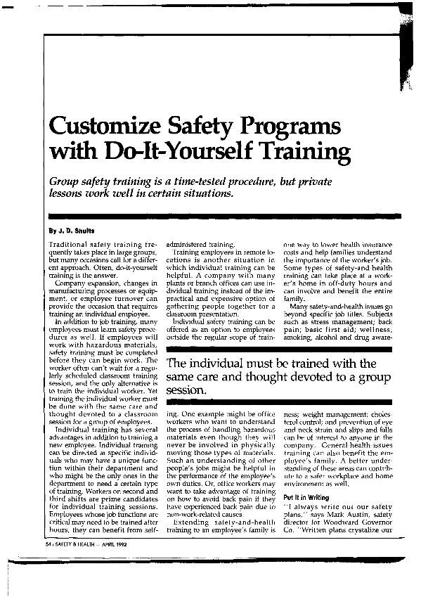 En: Safety & health. - Chicago. - Vol, 145, nº 4, April 1992 ; p. 54-57