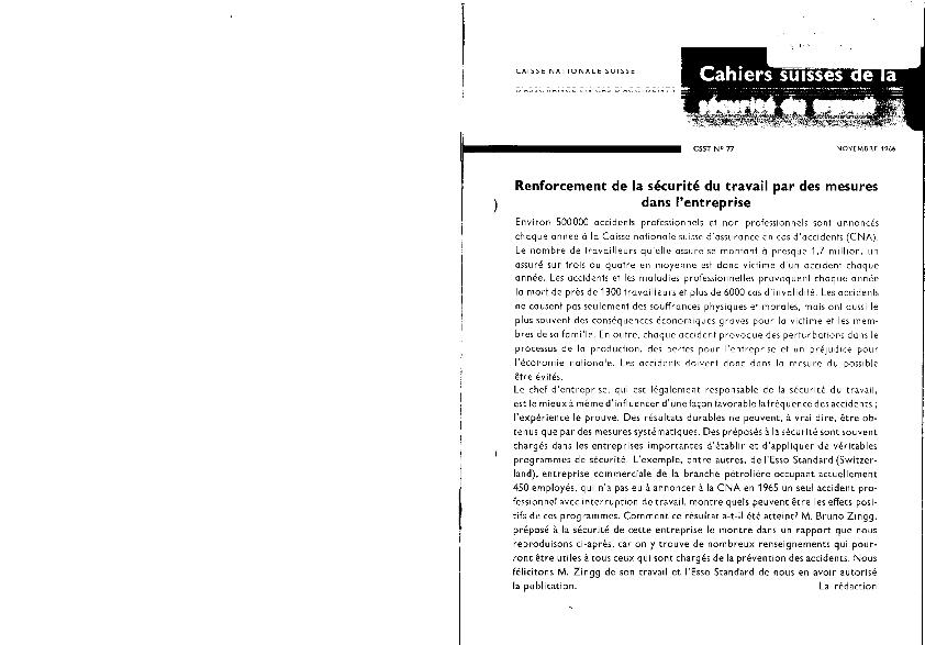 En: Cahiers suisses de la sécurité du travail. - Lucerne. - nº 77, novembre 1966 ; 8 p.
