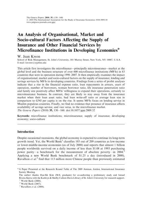 En: Geneva papers on risk and insurance : issues and practice. - Geneva : The Geneva Association, 1976- = ISSN 1018-5895. - 01/01/2010 Tomo 35 Número 1 - 2010