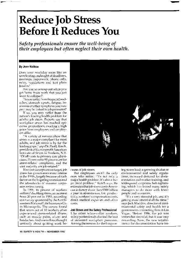En: Safety & health. - Itasca. - Vol. 146, nº 5, November 1992 ; p. 40-43