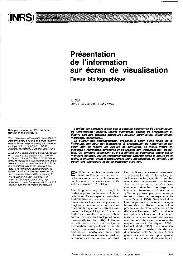 En: Cahiers de notes documentaires. - Paris. - nº 152, 3e. trimestre 1993 ; p. 461-476