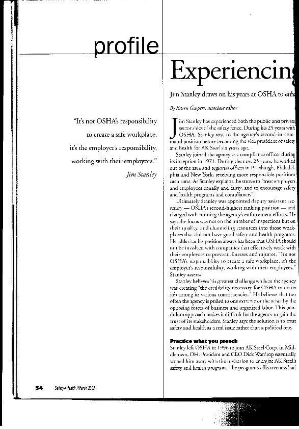 En: Safety & health. - Itasca. - vol. 165 nº 3, March 2002 ; p. 54-55