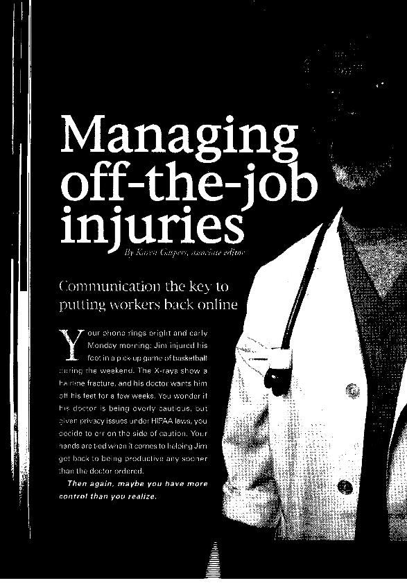 Managing off-the-job injuries : communication the key to putting workers back on line