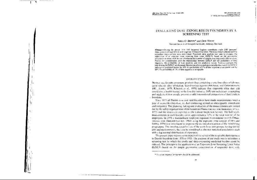 Evaluating dust exposures in foundries by a screening test