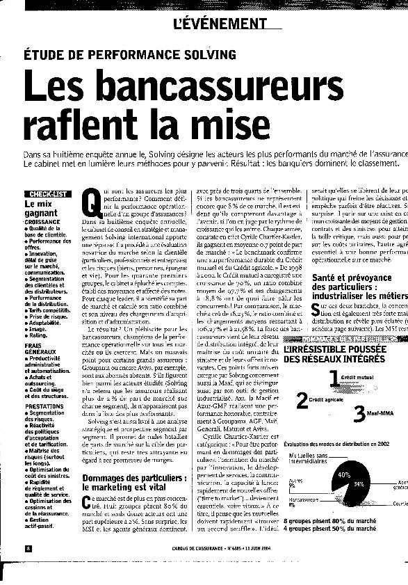 Les Bancassureurs raflent la mise : étude de performance Solving
