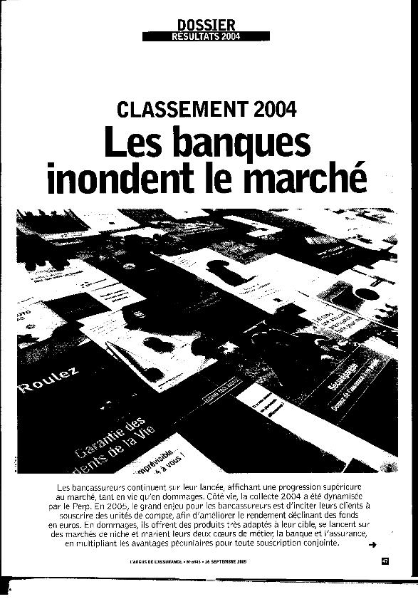 Les Banques inondent le marché : classement bancassurance 2004