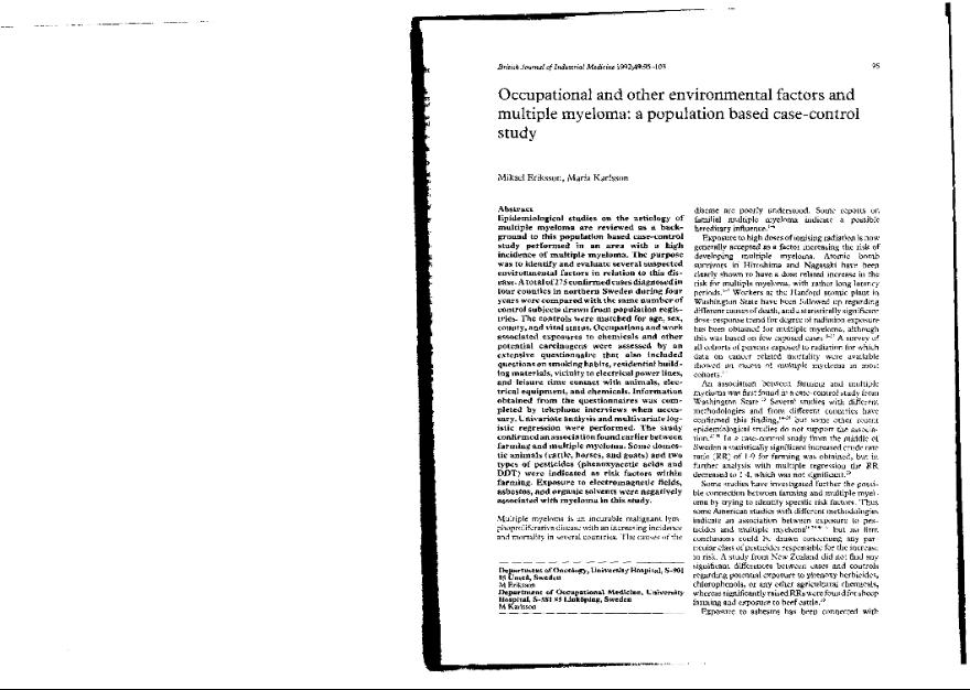 Occupational and other environmental factors and multiple myeloma : a population based case...