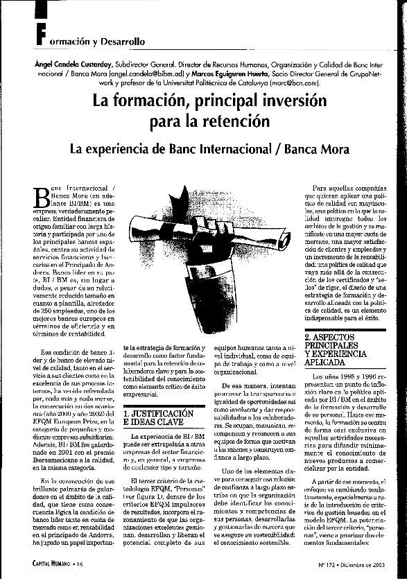 En: Capital humano. - Madrid. - nº 172, Diciembre 2003 ; p. 16-18