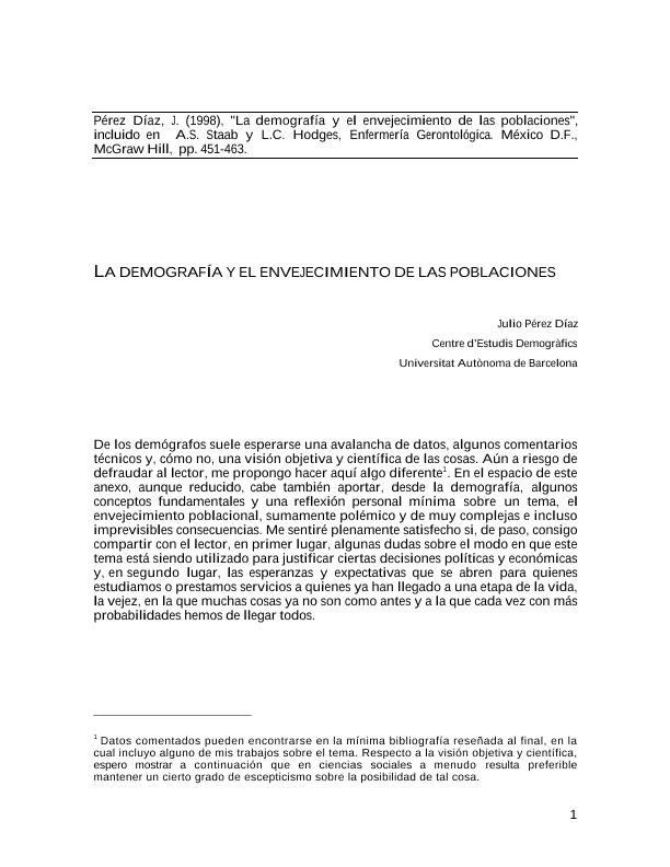 La Demografía y el envejecimiento de las poblaciones