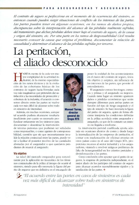 En: Aseguranza. - Madrid : Ediciones de Negocios S.L., 1996- = ISSN 1137-1048. - 01/09/2011 Número 164 - septiembre 2011 , p. 36