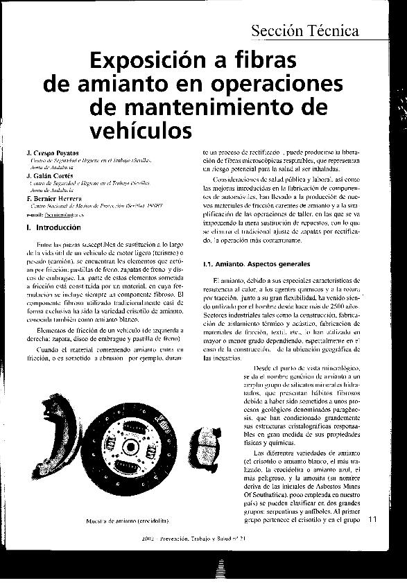 Exposición a fibras de amianto en operaciones de mantenimiento de vehículos