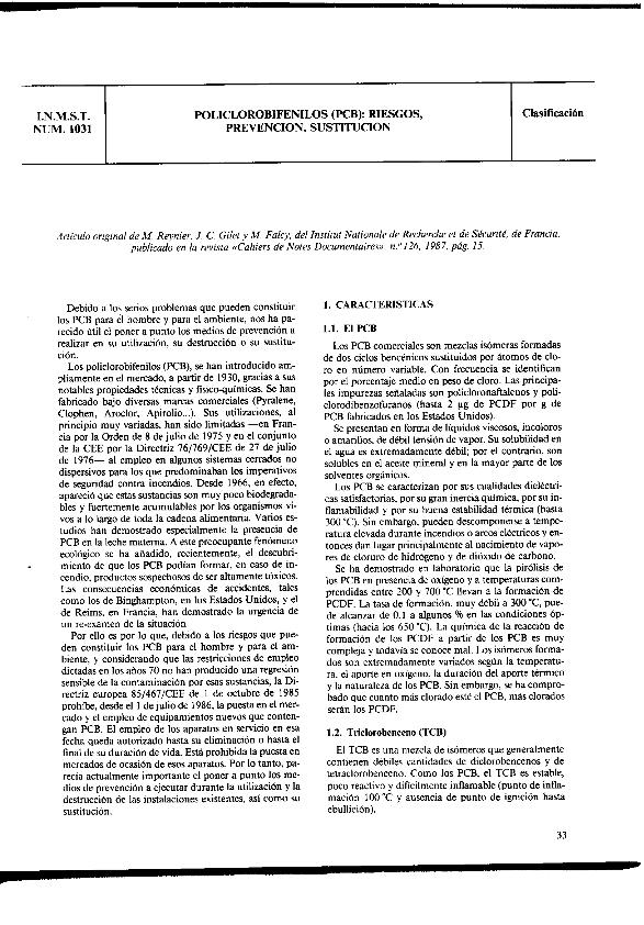 Policlorobifenilos (PCB) : riesgos, prevención, sustitución