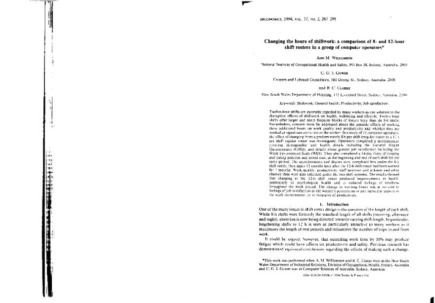Changing the hours of shiftwork : a comparison of 8- and 12-hour shift rosters in a group of...