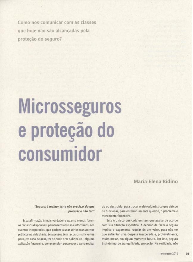 En: Cadernos de seguro. - Rio de Janeiro : Fundaçáo Escola Nacional de Seguros, 1997- = ISSN 0101-5818. - 01/09/2010 Número 162 - septiembre 2010 , p. 19-29