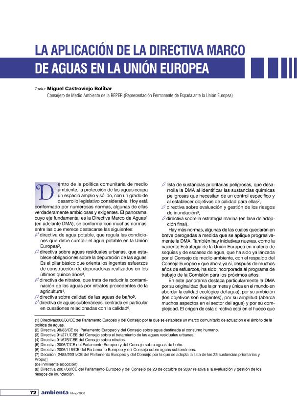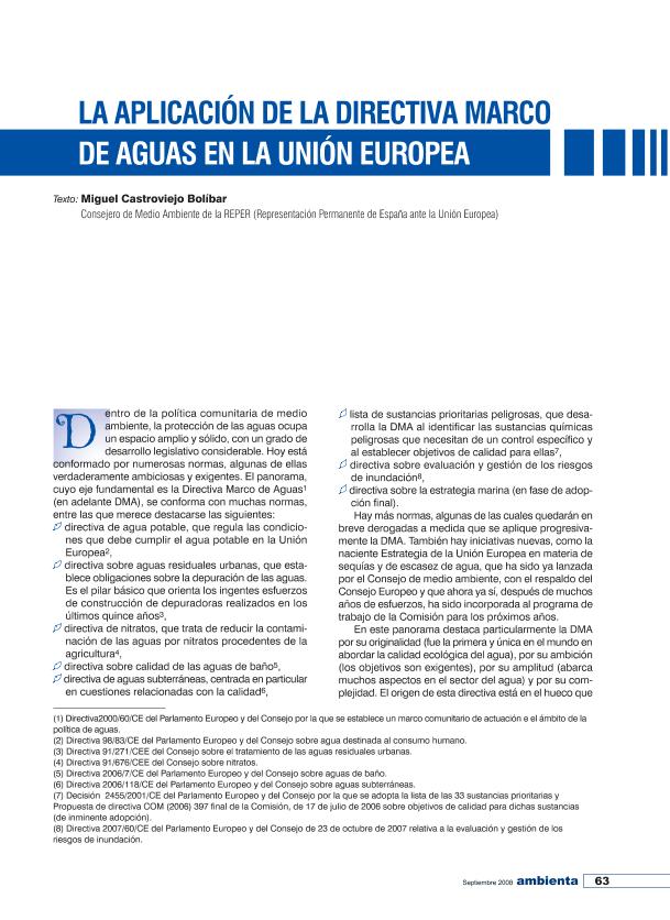 La Aplicación de la Directiva Marco de Aguas de la Unión Europea