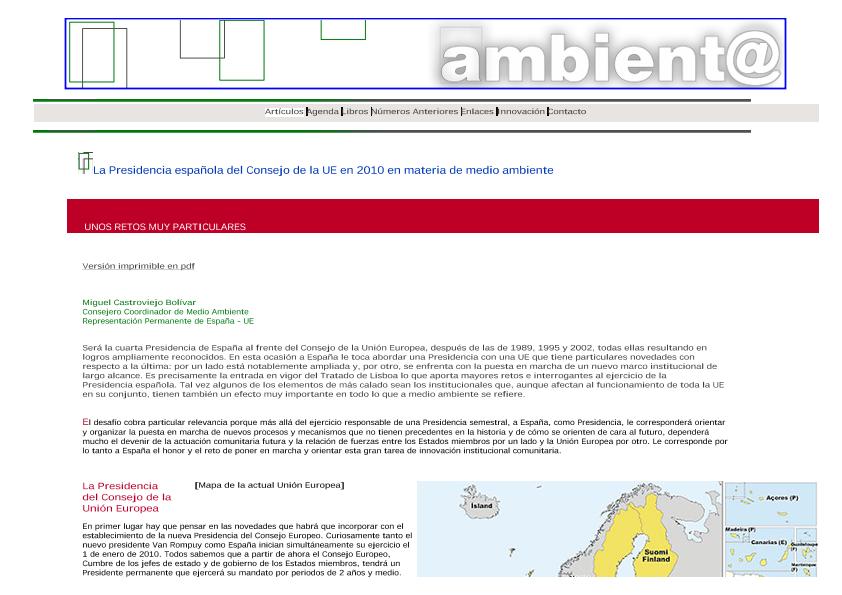 En: Ambienta. - Madrid : Ministerio de Medio Ambiente y Medio Rural y Marino, 2002- = ISSN 1577-9491. - 06/01/2009 Número 89 - Mes Diciembre