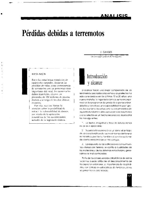 Pérdidas como consecuencia de terremotos : métodos para su estimación