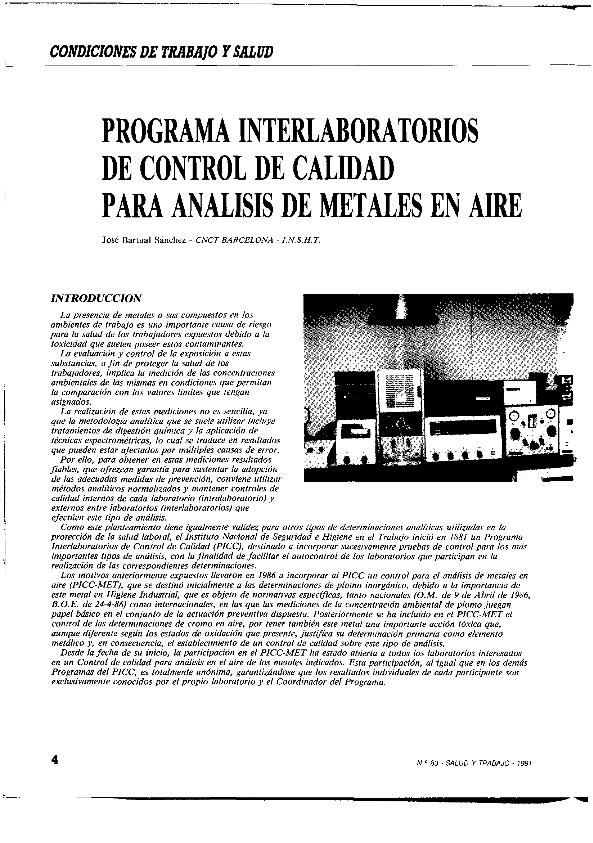 Programa interlaboratorios de control de calidad para análisis de metales en aire
