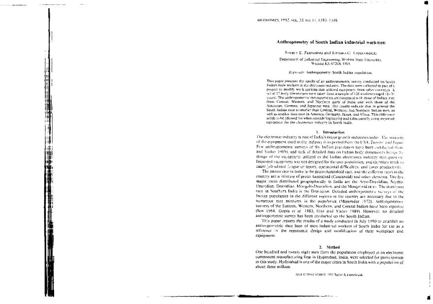 Anthropometry of South Indian industrial workmen