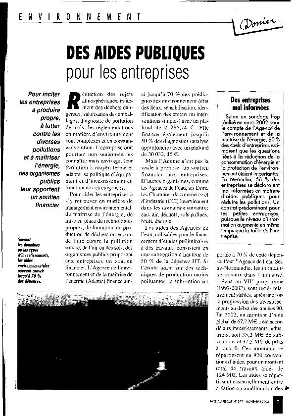 En: Face au risque. - Paris. - nº 397, novembre 2003 ; p. 7-9