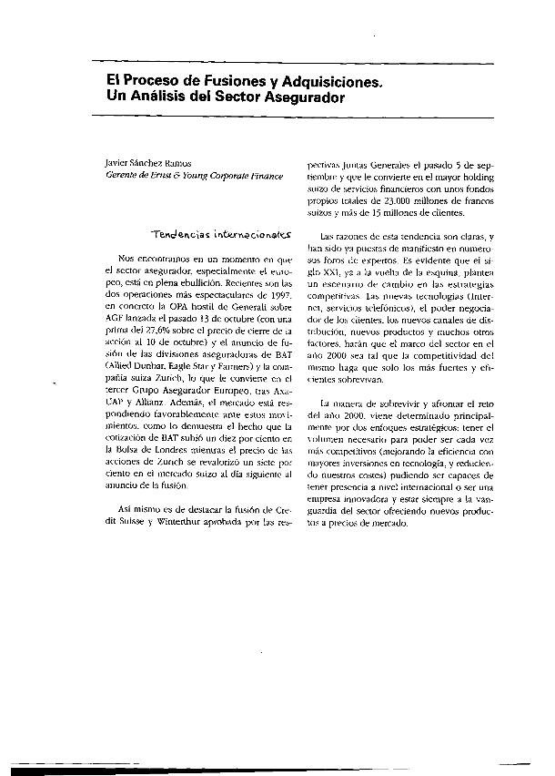 El Proceso de fusiones y adquisiciones : un análisis del sector asegurador