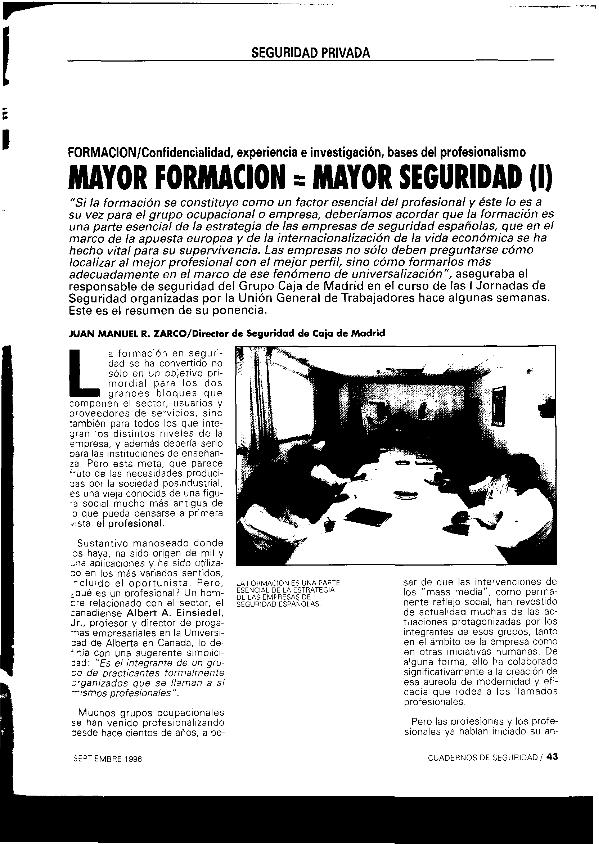 Mayor formación, mayor seguridad : (I) : confidencialidad, experiencia e investigación, bases del...