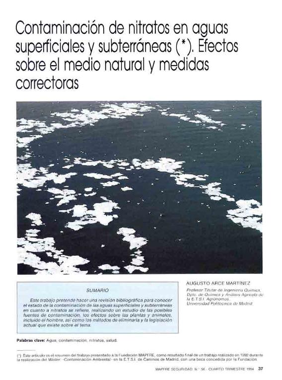 Contaminación de nitratos en aguas superficiales y subterráneas : efectos sobre el medio natural...