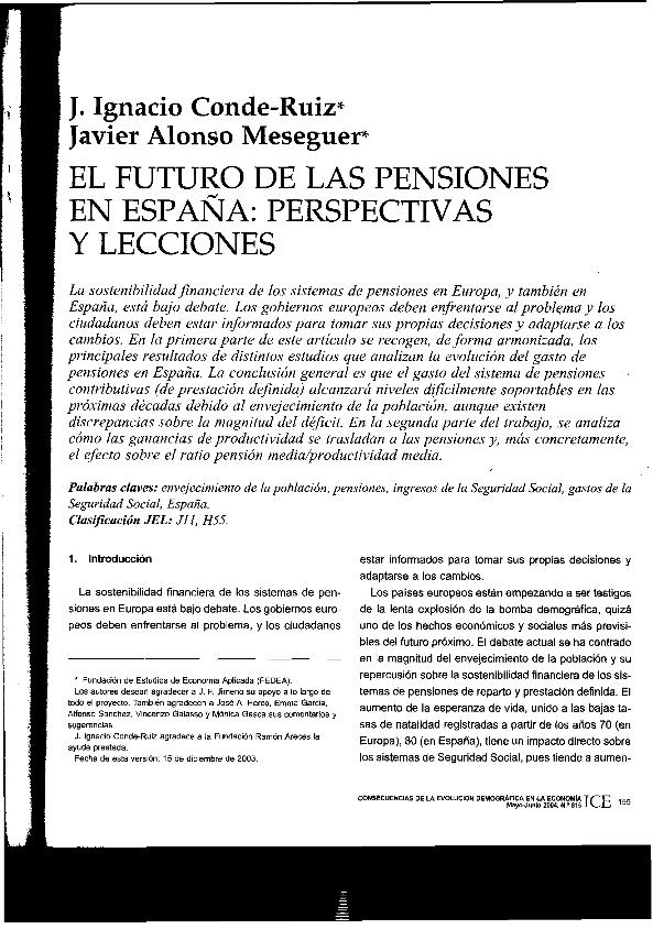 El Futuro de las pensiones en España : perspectivas y lecciones