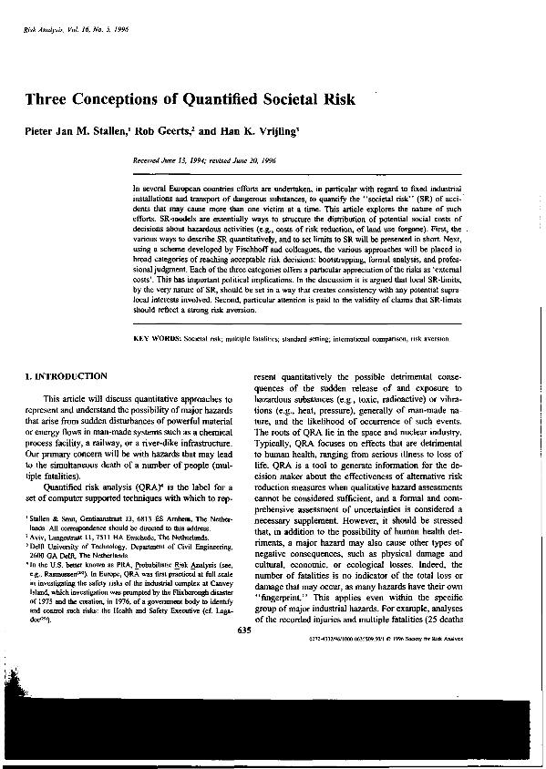 En: Risk analysis. - New York and London. - Vol. 16, nº 5, 1996 ; p. 635-644