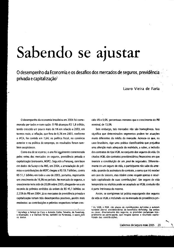 En: Cadernos de seguro. - Rio de Janeiro : FUNENSEG. - nº 130, Maio 2005 ; p. 23-29
