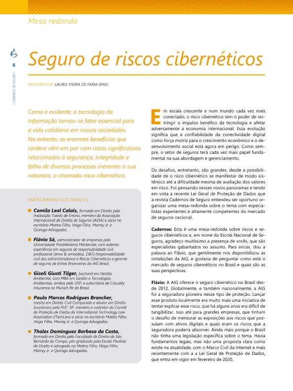 En: Cadernos de seguro. - Rio de Janeiro : Fundaçáo Escola Nacional de Seguros, 1997- = ISSN 0101-5818. - 03/12/2018 Número 195 - diciembre 2018 , p. 6-15