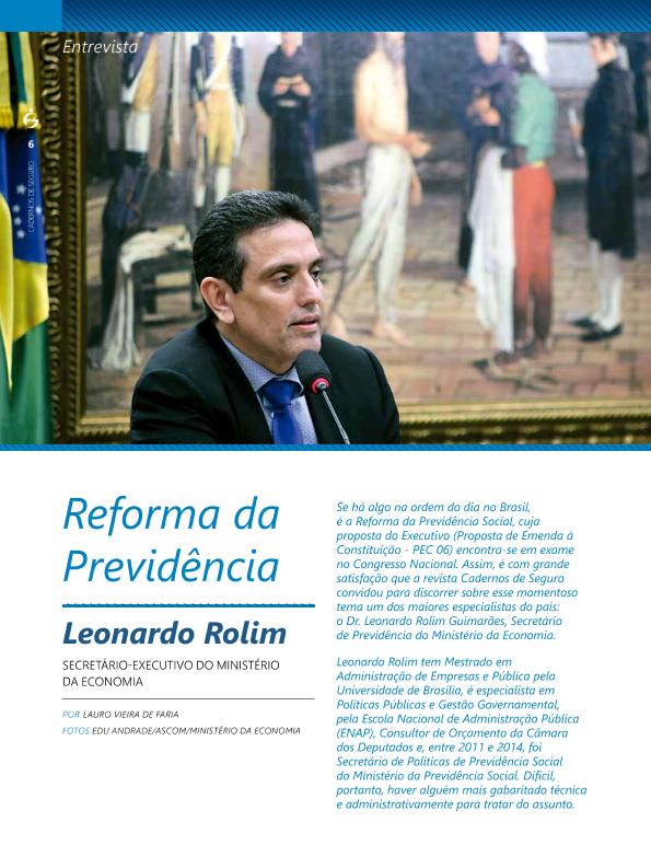 Reforma da Previdência : [entrevista a] Leonardo Rolim, secretário executivo do ministério da...