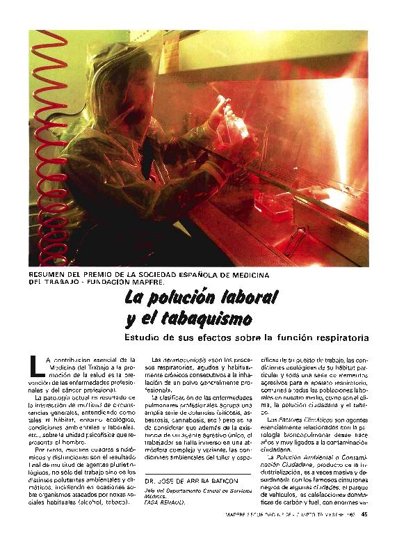 La Polución laboral y el tabaquismo : estudio de sus efectos sobre la función respiratoria