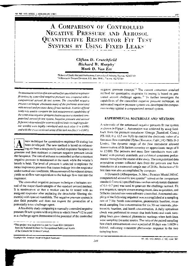 A Comparison of controlled negative pressure and aerosol quantitative respirator fit test systems...