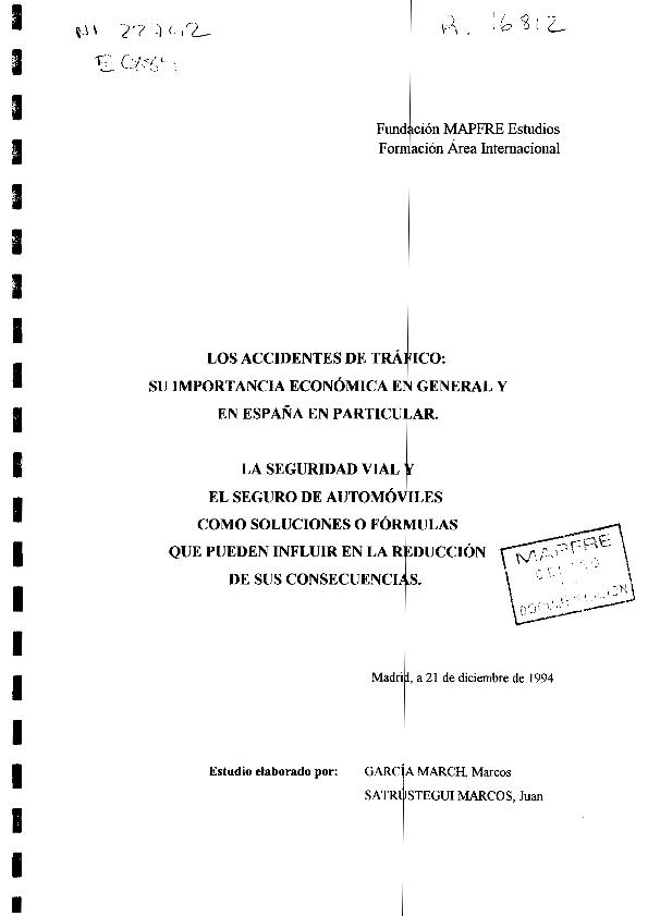 Los Accidentes de tráfico : su importancia económica en general y en España en particular. La...