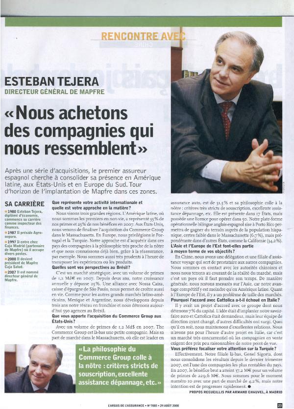 En: L'Argus de l'assurance. - Paris : Groupe Industrie Services Info, 1983- = ISSN 1626-4428. - 25/08/2008 Número 7085 - 2008, p. 23