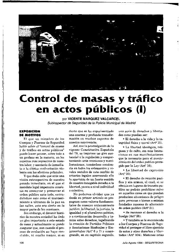 Control de masas y tráfico en actos públicos : (I)