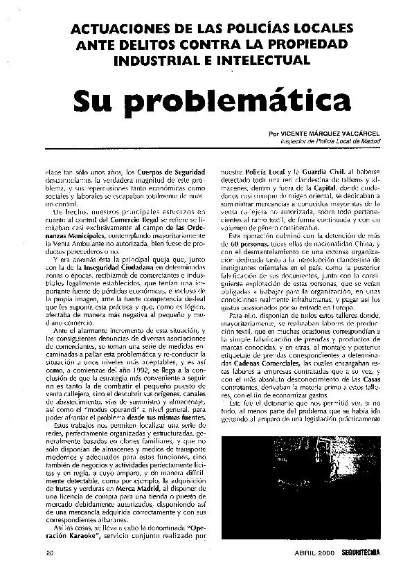 Actuaciones de las policías locales ante los delitos contra la propiedad industrial e intelectual...
