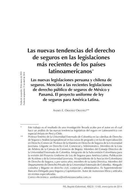- En: Revista Ibero-Latinoamericana de Seguros. - Bogotá : Pontificia Universidad Javeriana, 1992- = ISSN 0123-1154 (impreso). - 01/11/2004 Número 21 2004