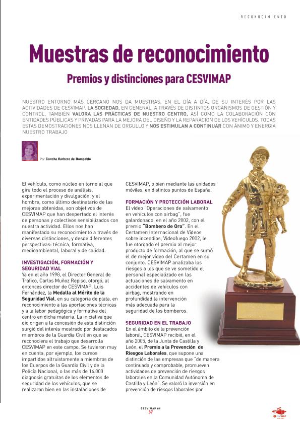 Muestras de reconocimiento : premios y distinciones para CESVIMAP