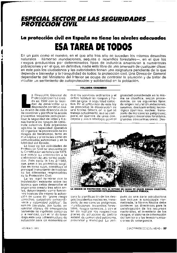 Esa tarea de todos : la protección civil en España no tiene los niveles adecuados
